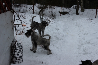 | Omistaja Sanna-.Mari Pyy ja pentu Nemo | Omistaja Riitta Heikkilä ja pentu Elli | |||