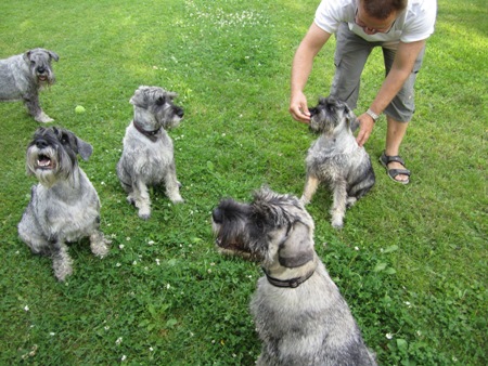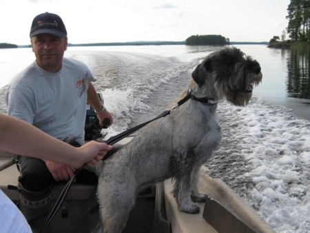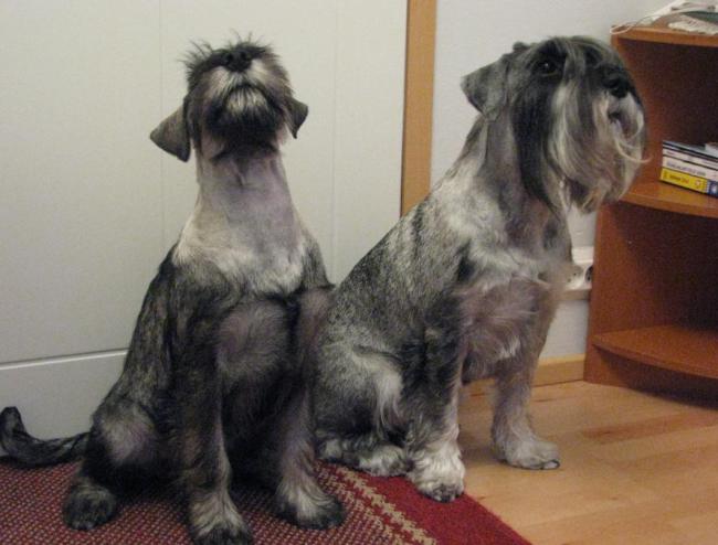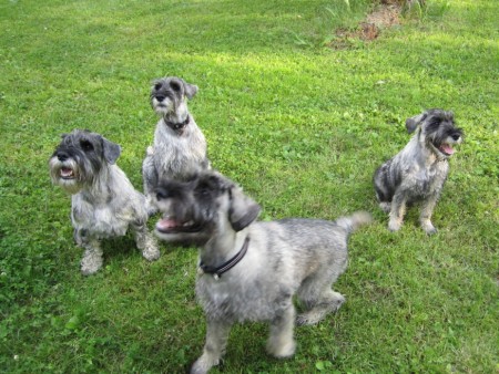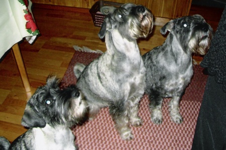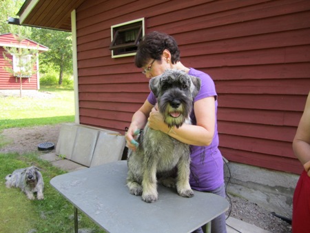 | Saku trimmauspöydällä | Mira-äiti ja lapset Saku, Laila ja Riia | |||