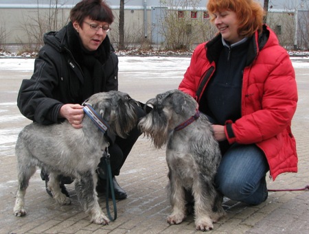 | Alla, Timo, Mira ja Pearl Tallinnassa joulukuussa 2009 | Joensuun kv- näyttelyporukkaa koirineen 30.5.2010 | |||